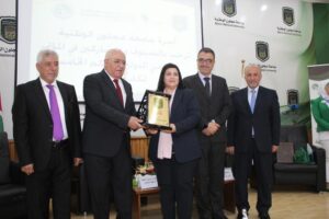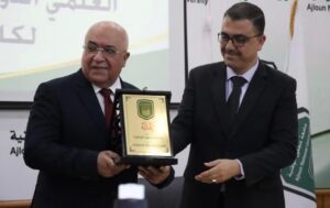 وفي نهاية الجلسة الإفتتاحية قدم راعي الحفل ورئيس الجامعة ورئيس مجلس الأمناء دروع المؤتمر للجهات الداعمة، كما قامت جامعة عجلون الوطنية درع المؤتمر للمهندس موسى المعايطة.