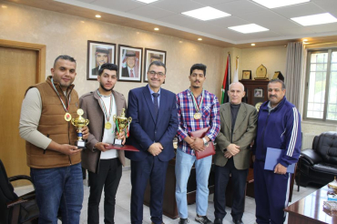 كرم رئيس جامعة عجلون الوطنية الأستاذ الدكتور فراس الهناندة يوم السبت الموافق ٢٠٢٣/٤/١٥ في مكتبه الطالب علاء عبدالكريم الغزو والطالب صلاح الدين عبابنة وذلك لحصولهم على المركز الثاني في بطولة البلياردو لجامعات إقليم الشمال الحكومية والخاصة والتي أقيمت في جامعة …
